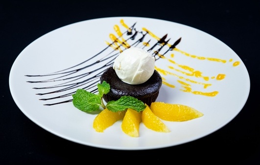 An indulgent chocolate cake, served warm to reveal a melting chocolate centre. Served with a scoop of vanilla ice cream